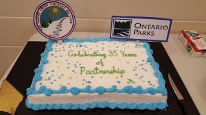 The 35th anniversary of our Ski Club’s partnership with Murphys Point Provincial Park was highlighted at the AGM on November 6, 2017 held in the Meeting Room at the Perth Pool. Curtis Thompson, park superintendent, presented club president, Drew Lampman, with a commemorative plaque.